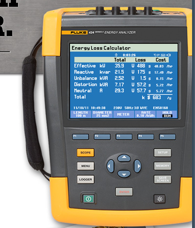 Poor power quality dramatically increases the amount of energy wasted in your facility — energy waste you still have to pay for. The new Fluke 434 Series II Energy Analyzer calculates the cost of that energy loss, enabling you to identify problem areas and implement appropriate solutions. You save energy. And money too.