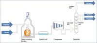 South Korea’s petrochemical company is located in the town of Yeosu. The plant started from 350,000 tons of ethylene per year production and expanded to 1,000,000 tons per year now. There are twelve naphtha cracking furnaces in this plant. The naphtha used as the feedstock for this plant is fed to a pyrolysis (steam cracking) furnace, where it is combined with steam and heated to 980 to 1,080° C. Within this temperature range, the feedstock molecules "crack" to produce ethylene as well as methane, hydrogen, ethylene, propylene, butadiene, benzene, toluene, xylene, and other co-products. After the pyrolysis reaction is quenched, the rest of the plant separates the desired products into streams that meet the various product specifications. The process steps include distillation, compression, process gas drying, hydrogenation (of acetylenes), and heat transfer.